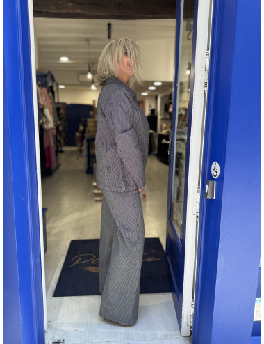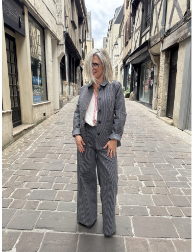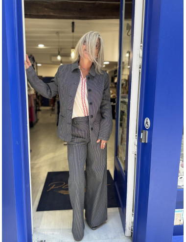 Un modèle iconique de la marque, le pantalon ANETT Cream, décliné cette saison, dans une version rayée.