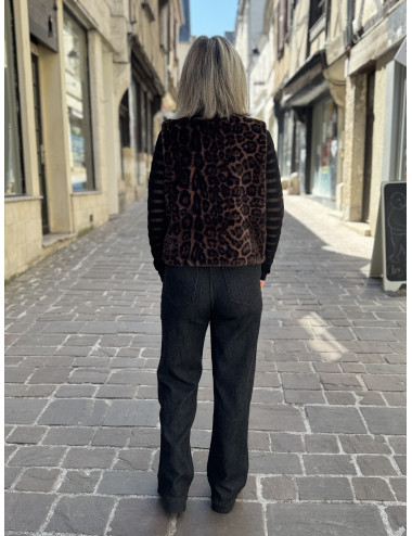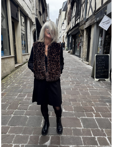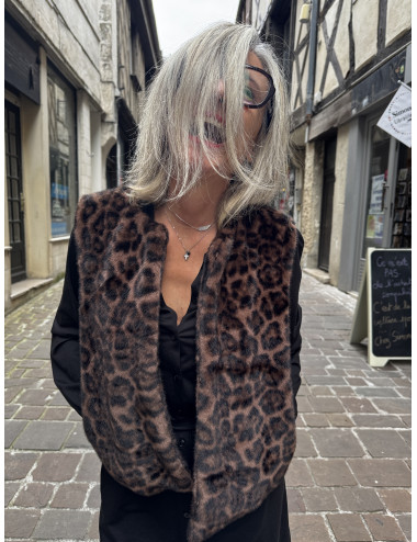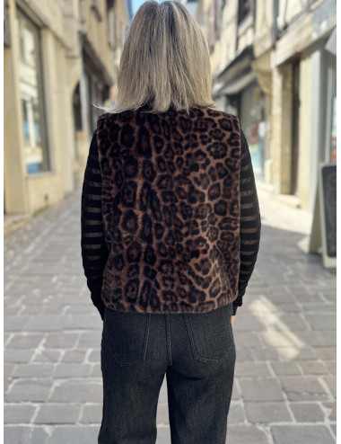 Gilet sans manches, fourrure synthétique imprimé léopard MINK BACI Labdip