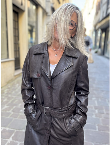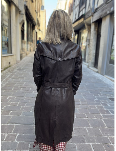 Veste longue LIYA cuir chocolat Mauritius