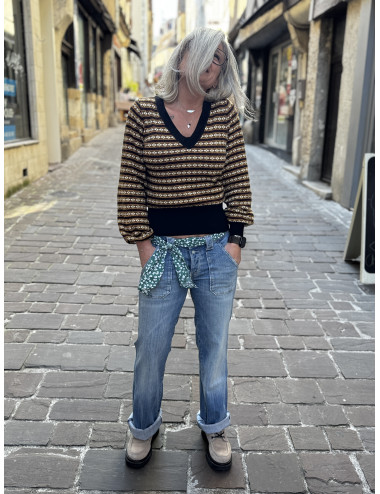 Fermeture à boutons dont 2 jolis boutons apparents ornés de turquoise