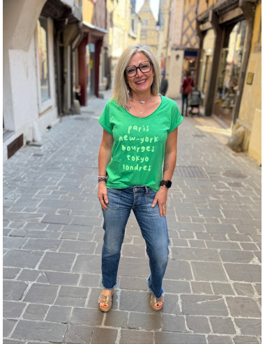 Tee shirt Paris New York Bourges neon fond vert