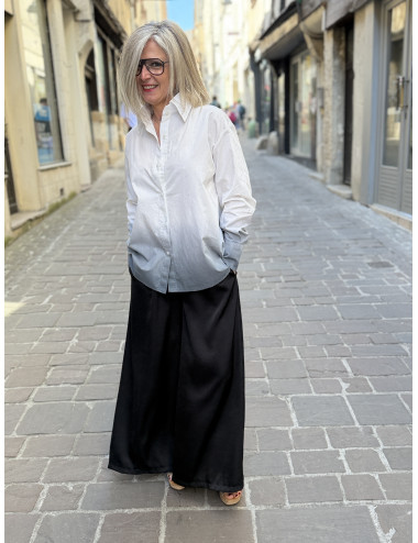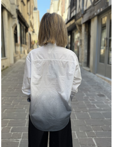 Imprimé tie and dye blanc/gris sur le bas de la chemise et bas des manches
